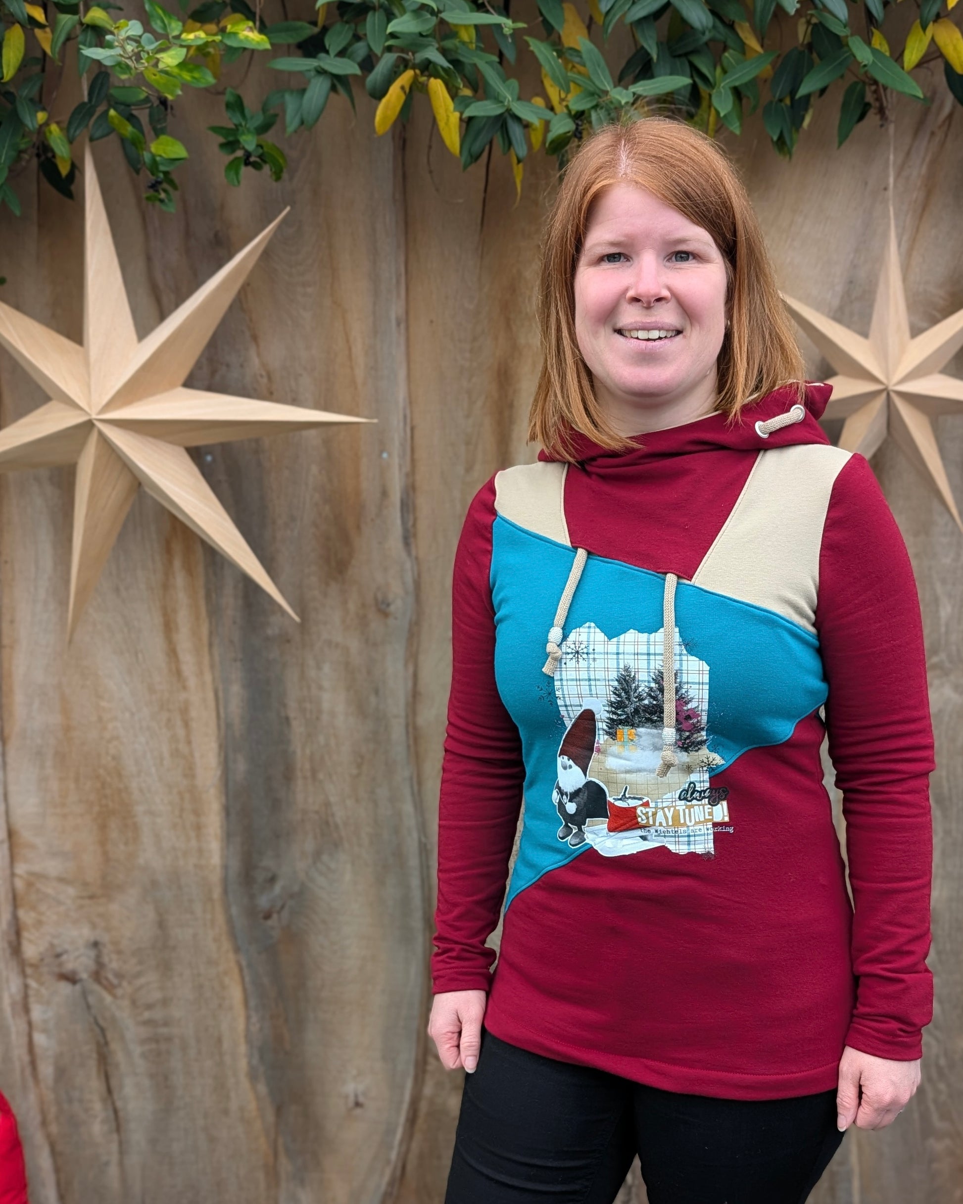 Der Schnitt ist auf Sommersweat ausgelegt, kann aber auch aus Sweat oder Jersey genäht werden.