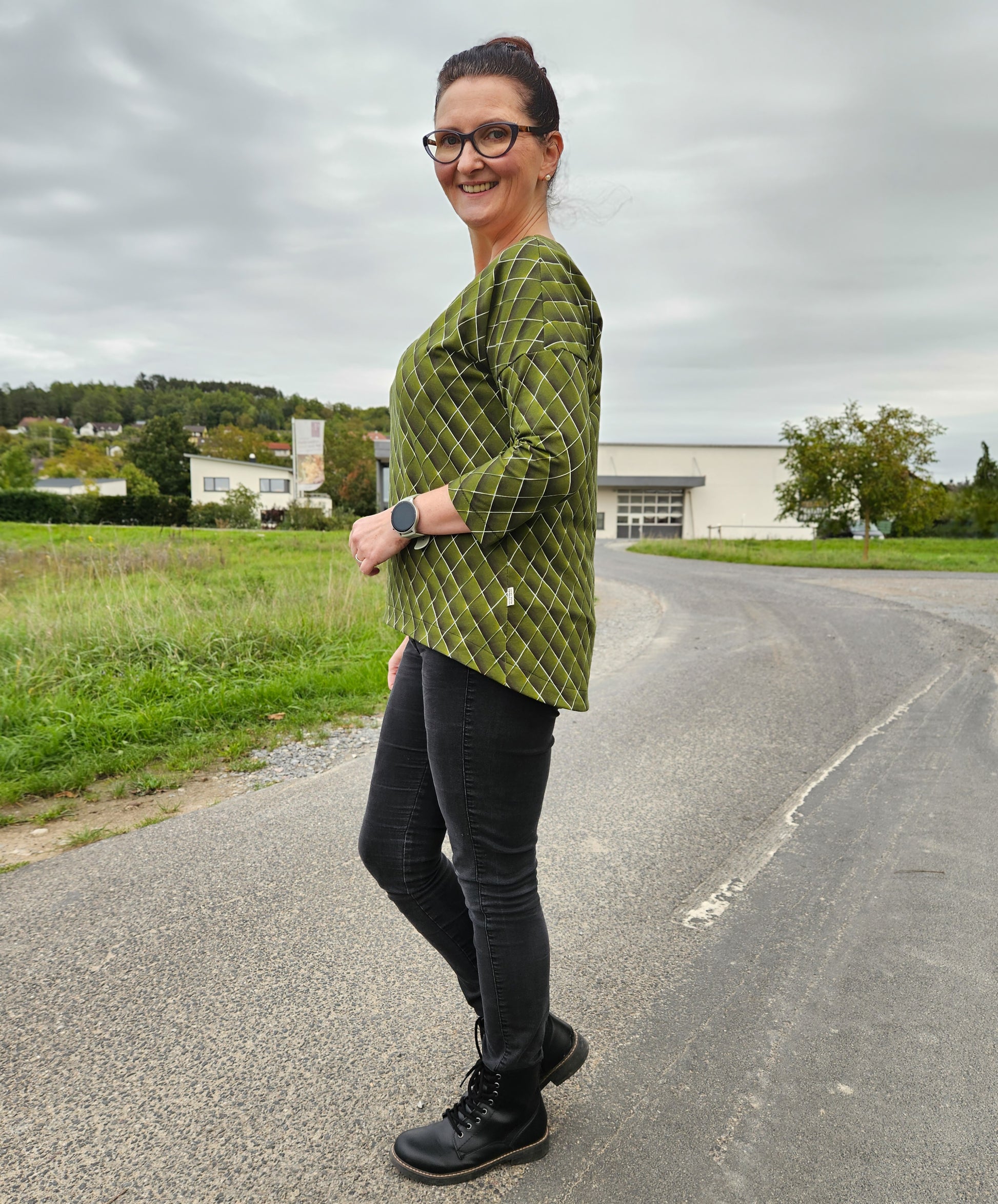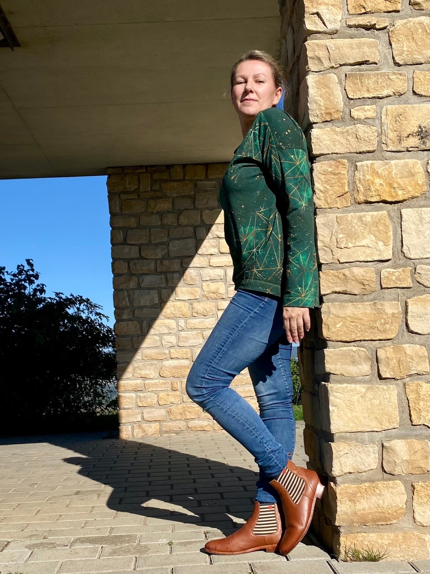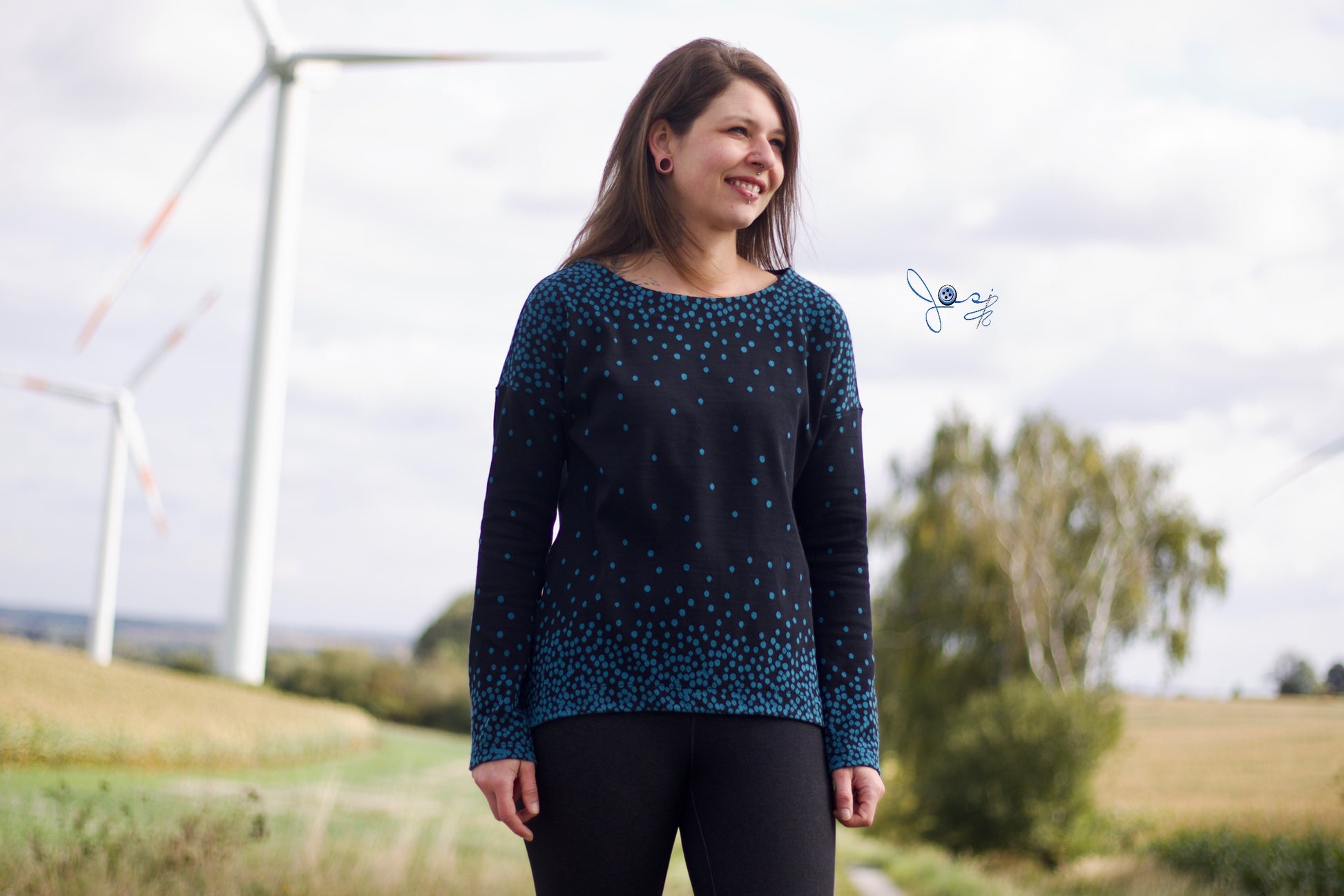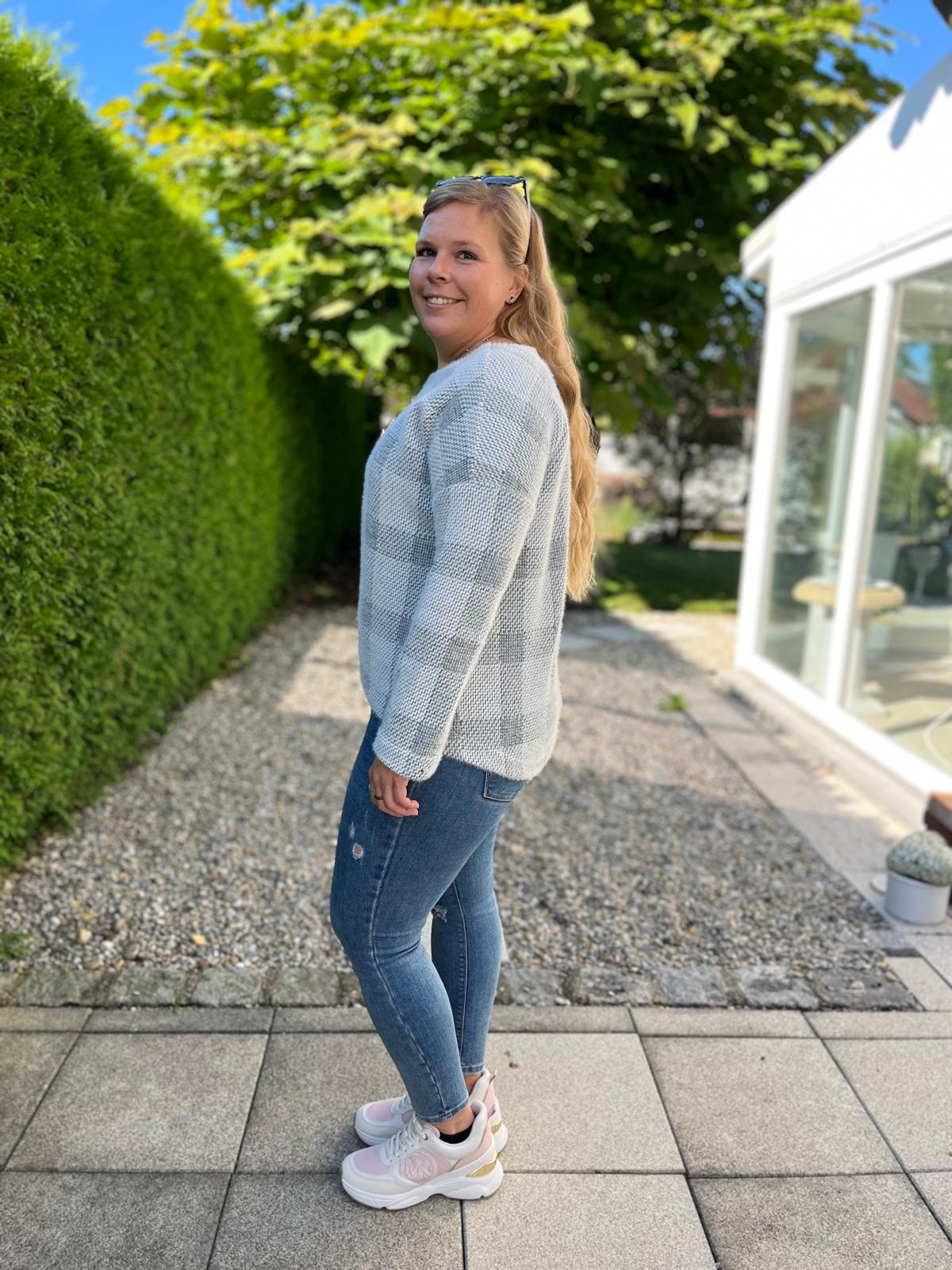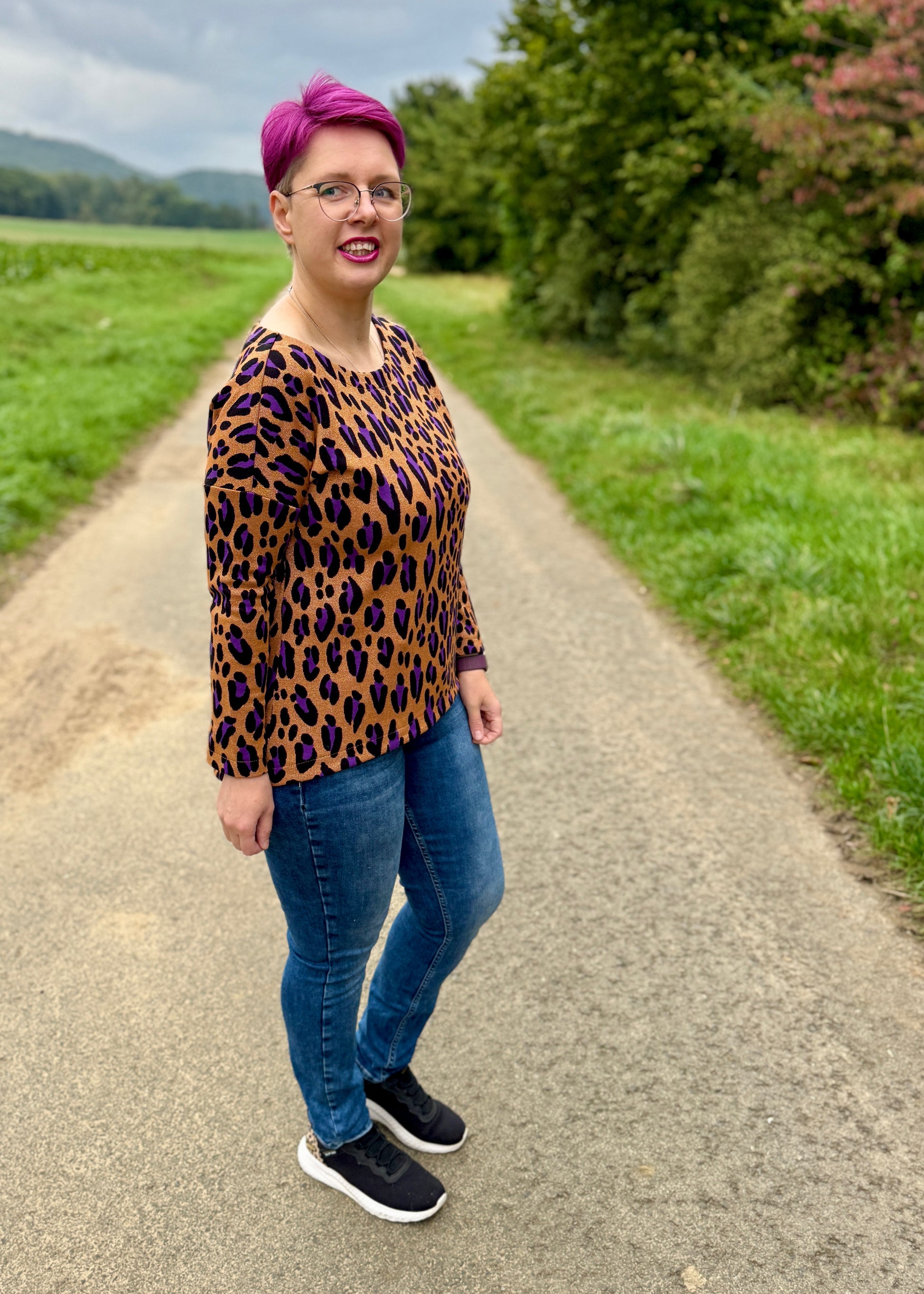 Der Schnitt ist ausgelegt auf Stoffe wie French Terry, Strickstoffe, Waffelstrick, festere Baumwolljerseys und Jacquard-Stoffe.