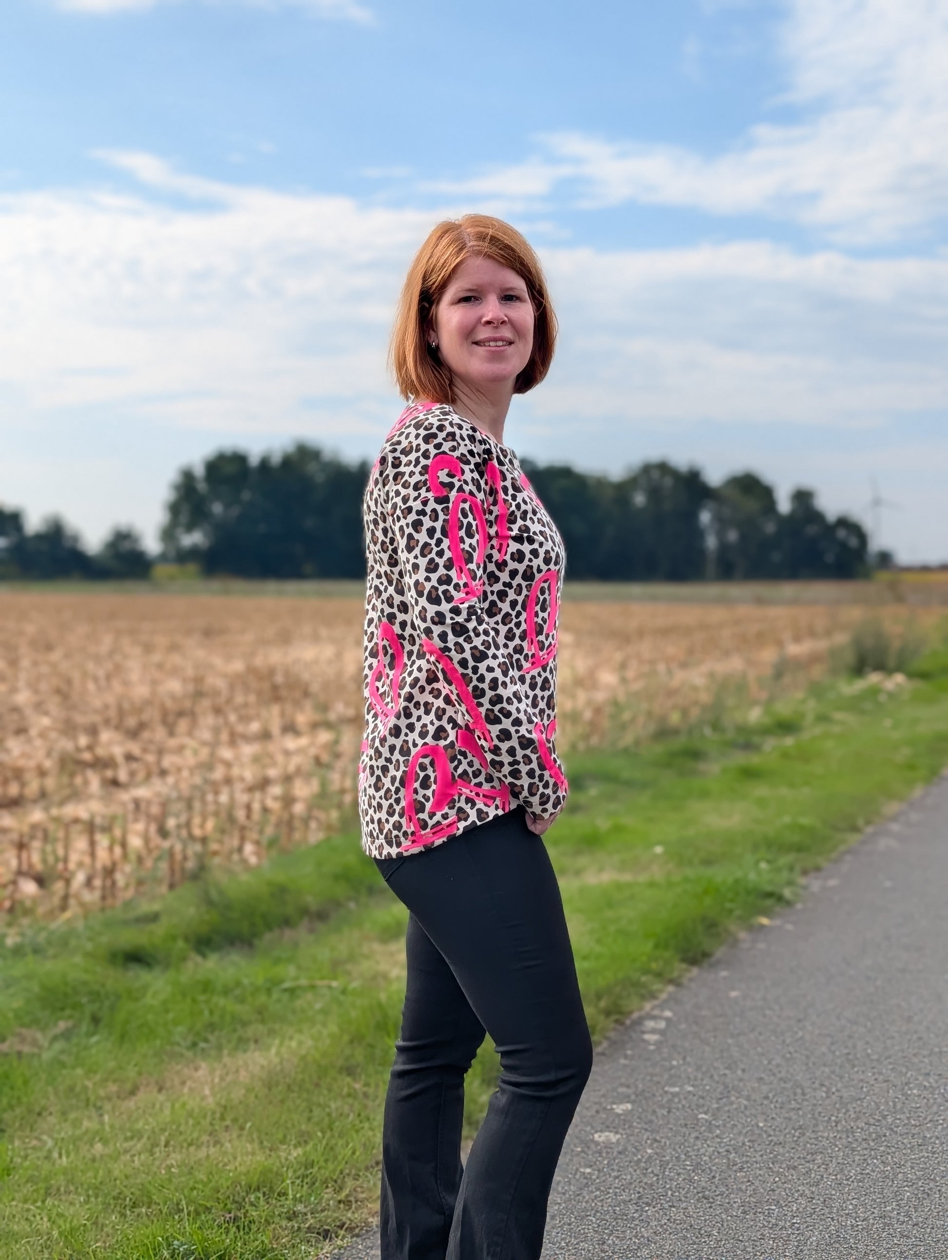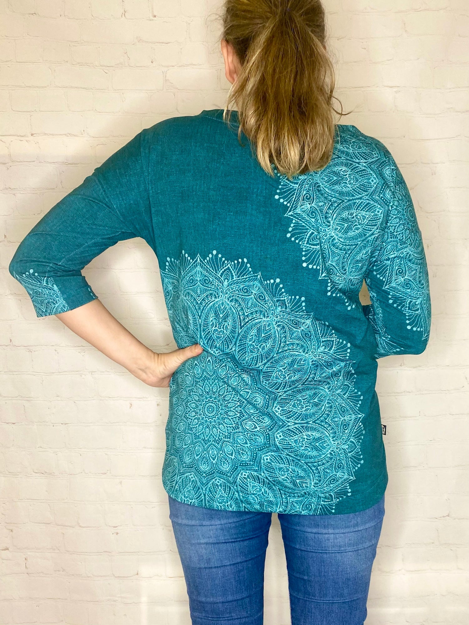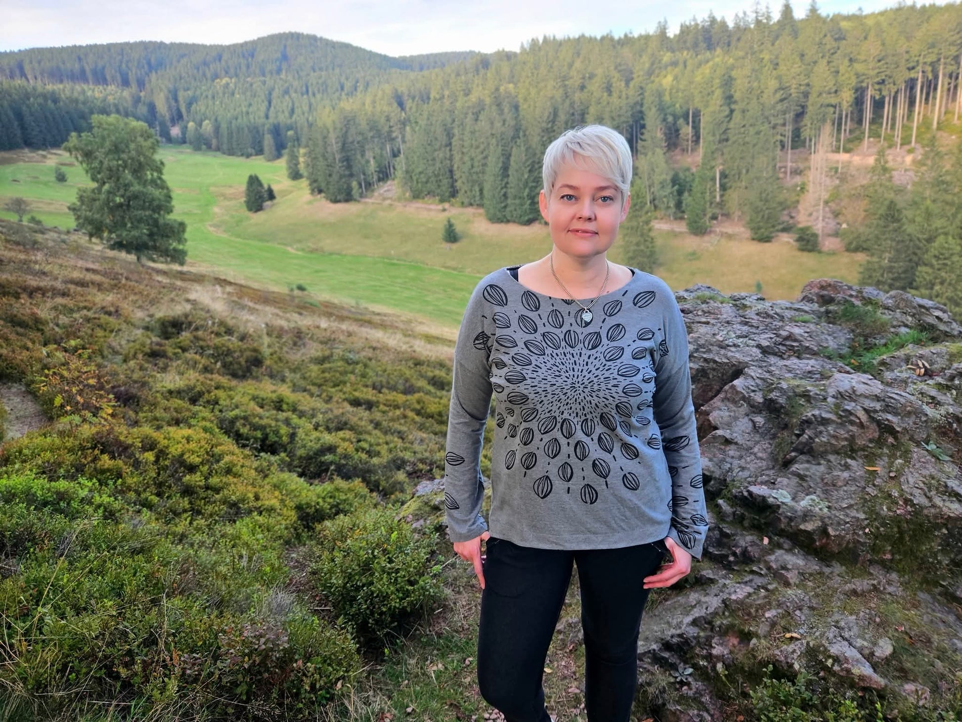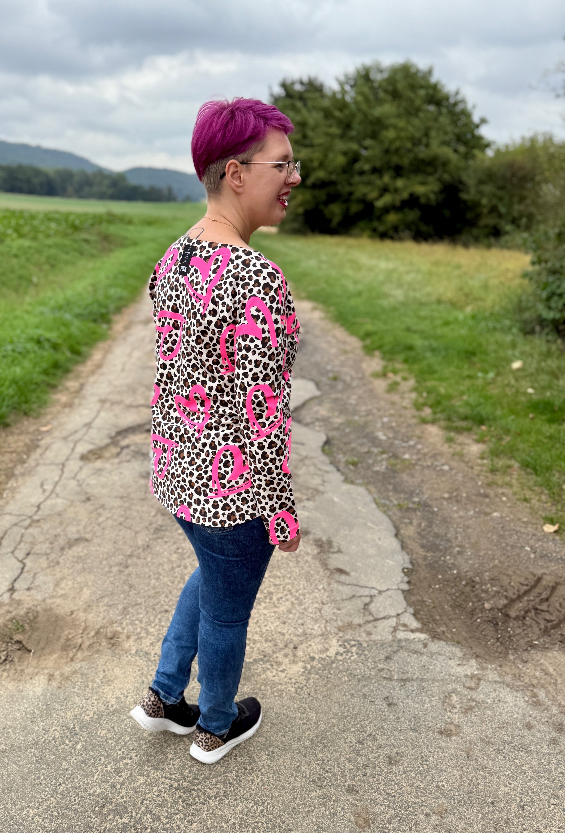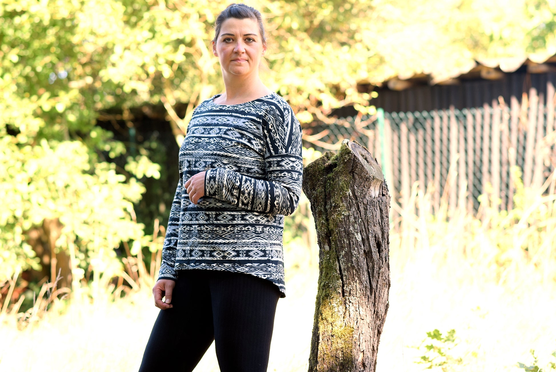 Der Schnitt ist ausgelegt auf Stoffe wie French Terry, Strickstoffe, Waffelstrick, festere Baumwolljerseys und Jacquard-Stoffe.