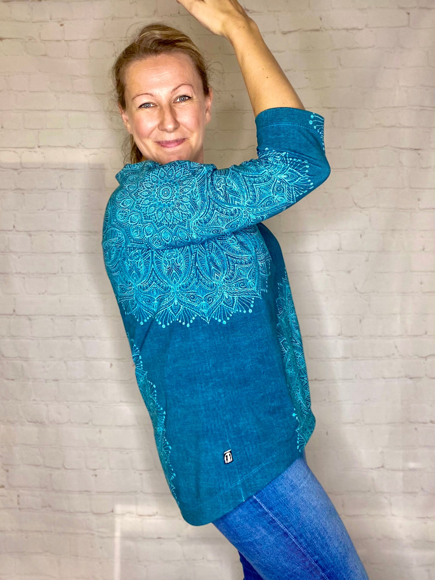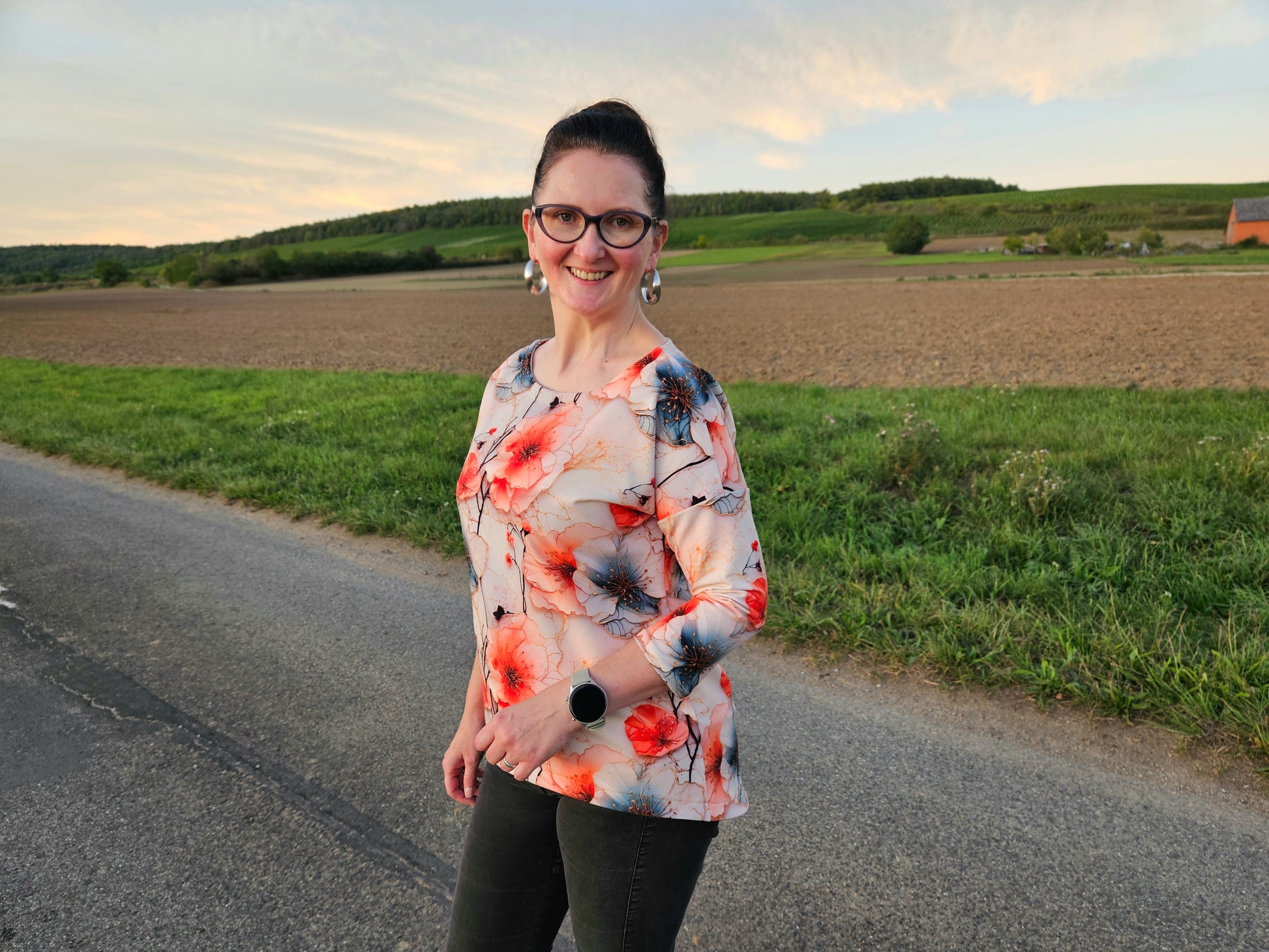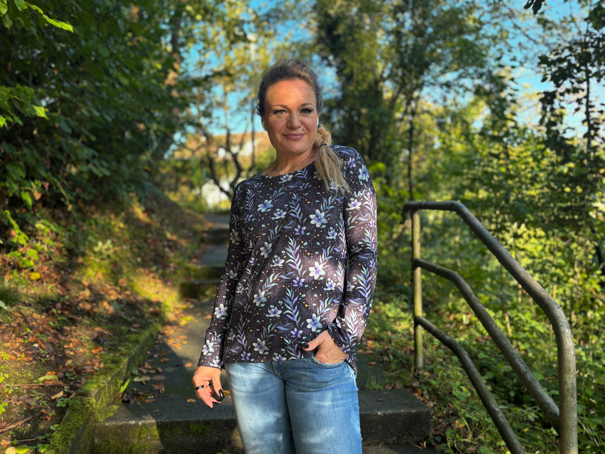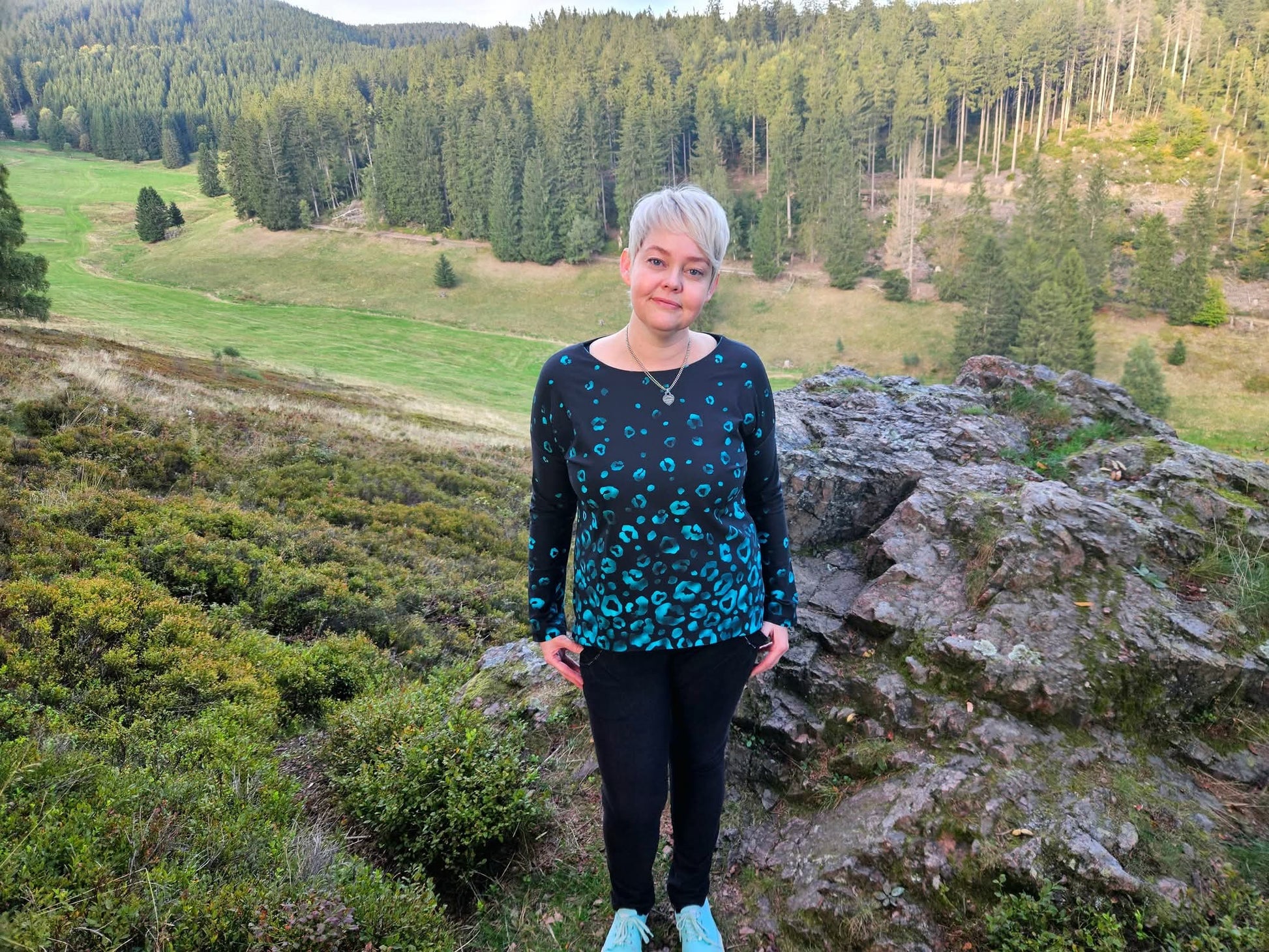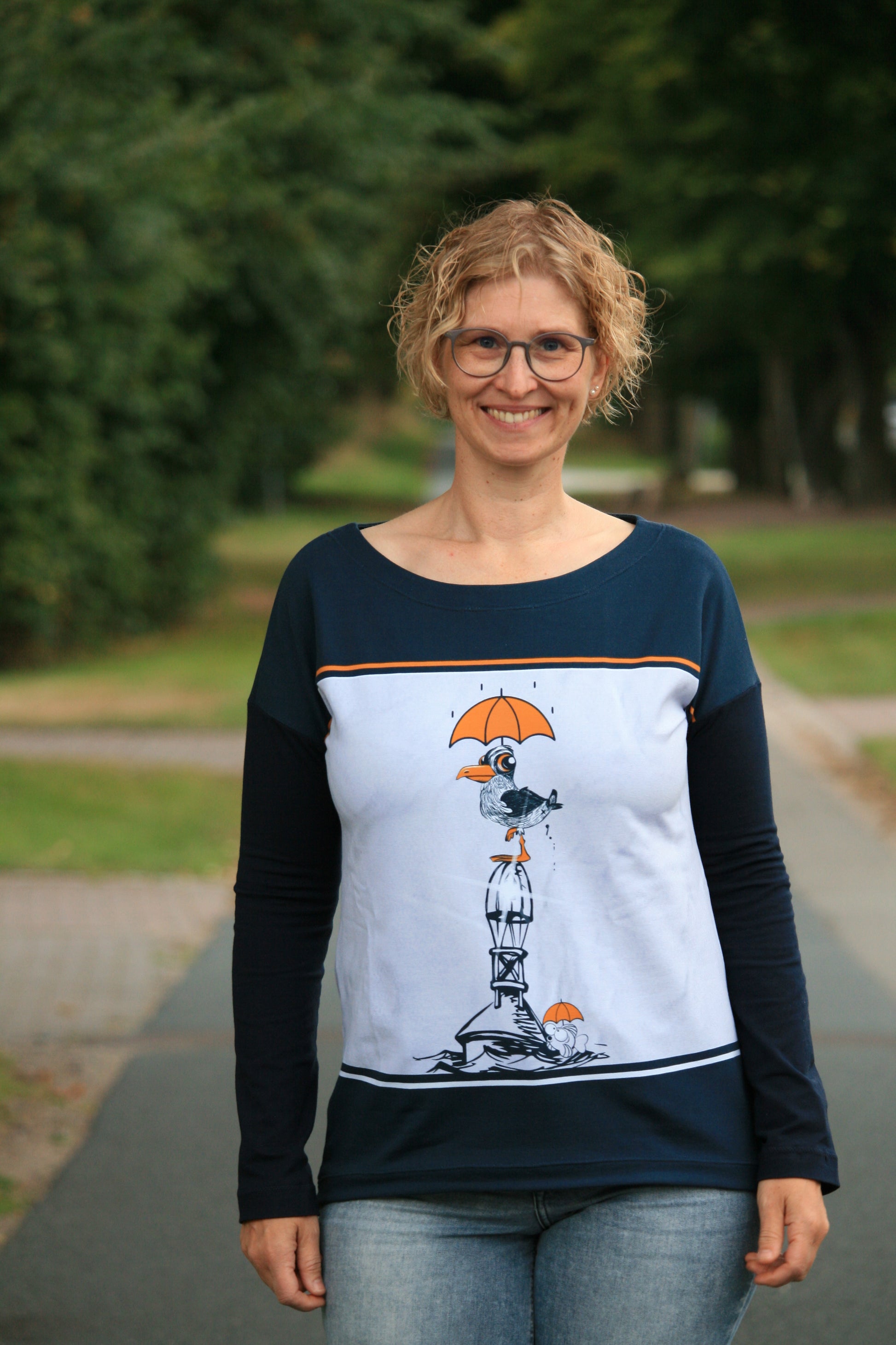 Der Schnitt ist ausgelegt auf Stoffe wie French Terry, Strickstoffe, Waffelstrick, festere Baumwolljerseys und Jacquard-Stoffe.