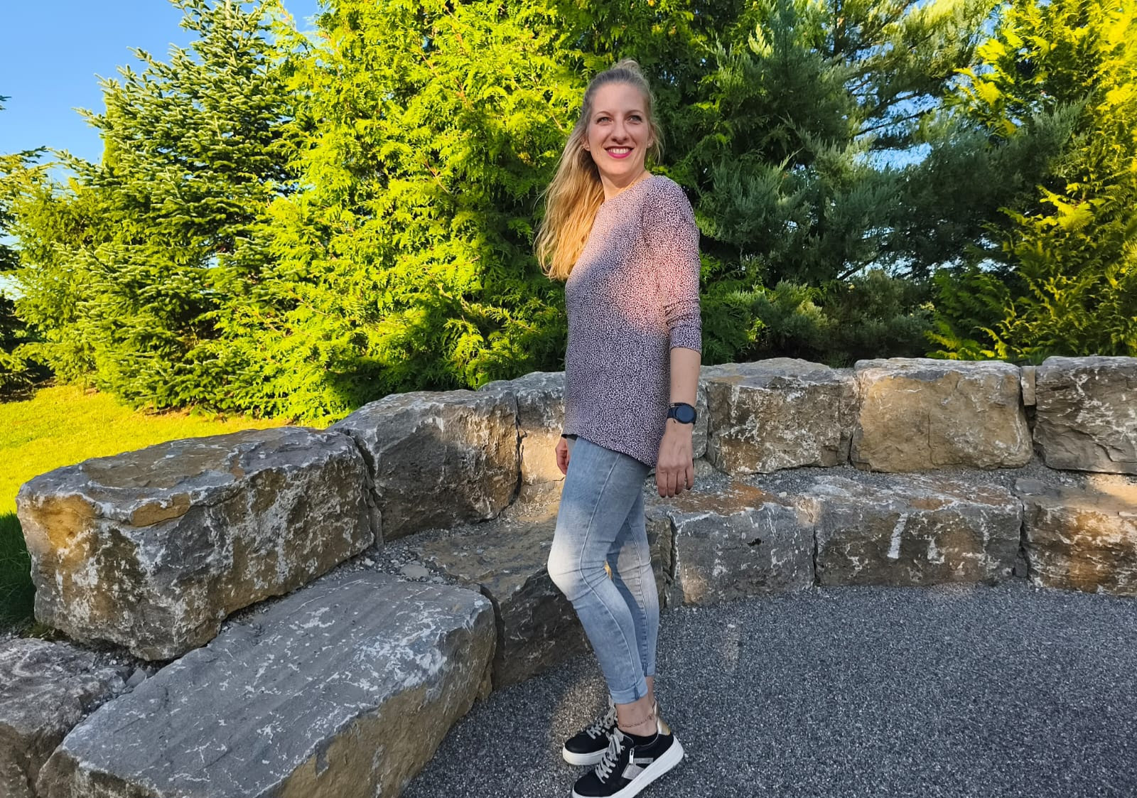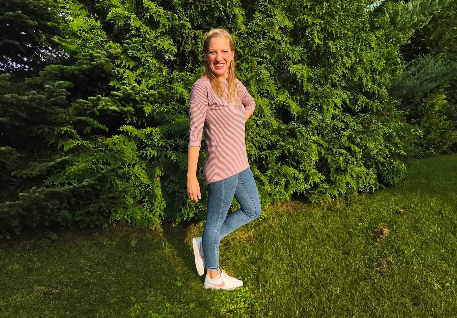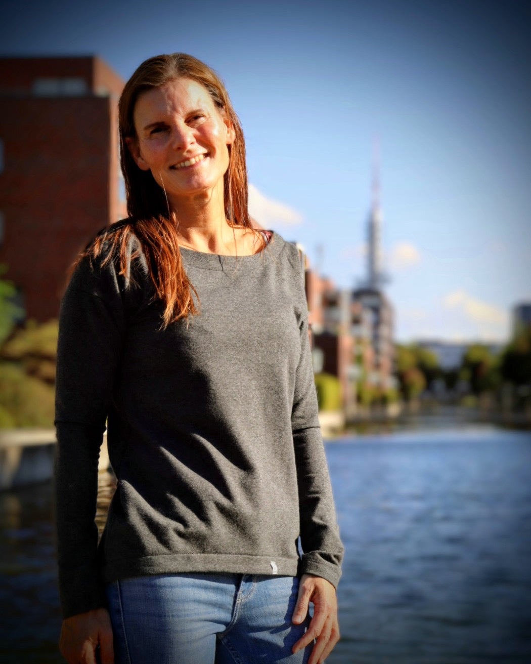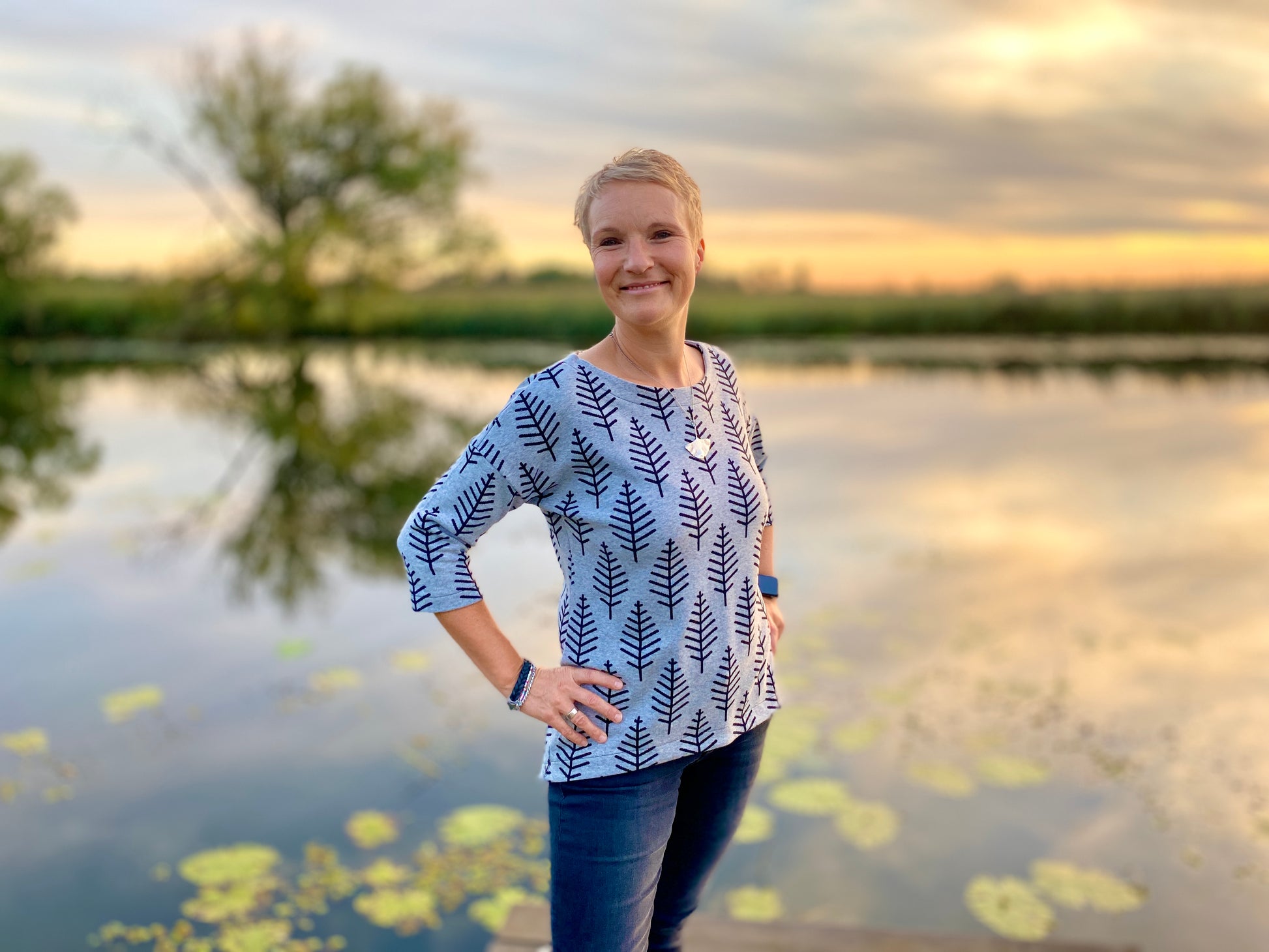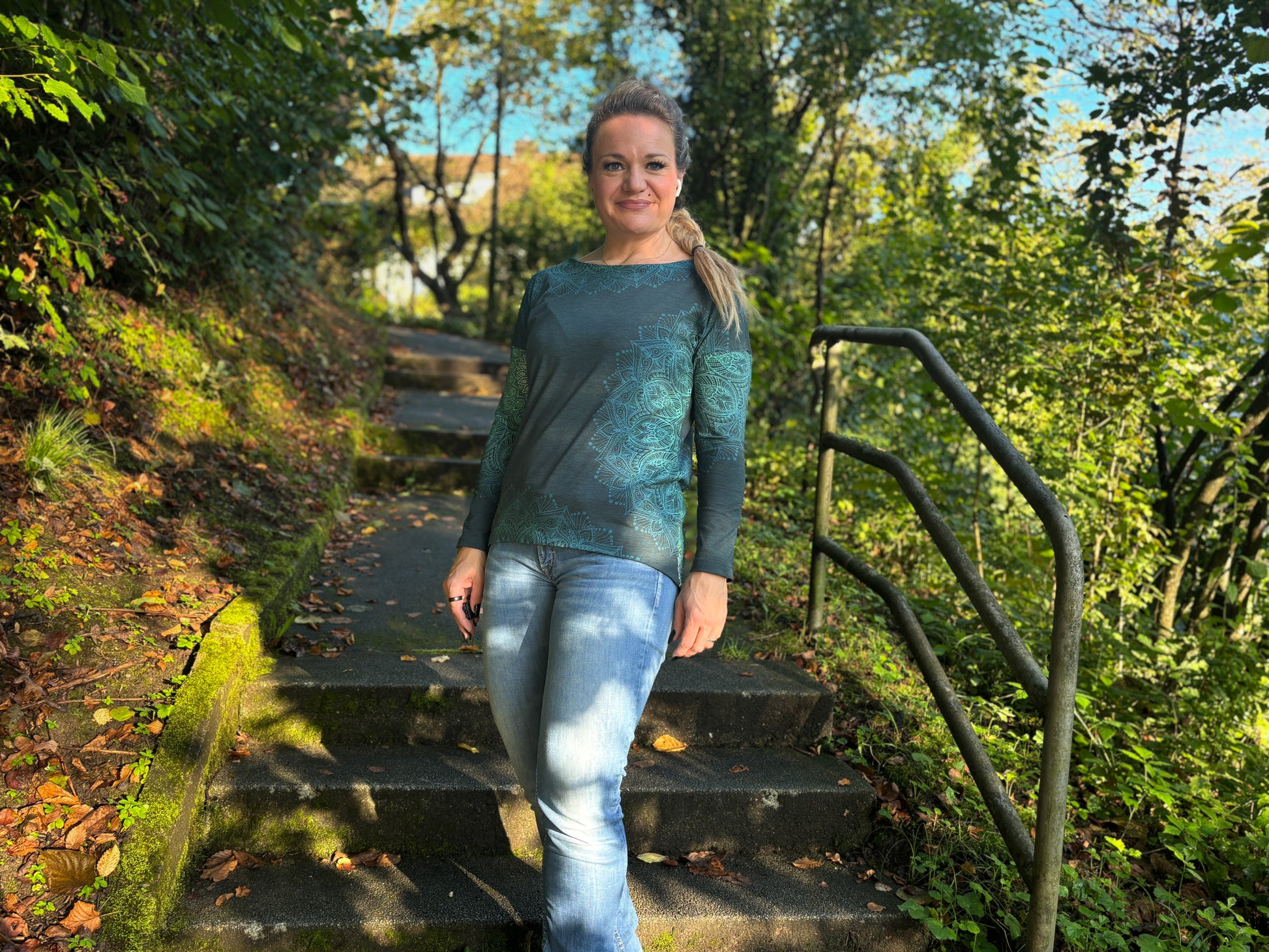 Der Schnitt ist ausgelegt auf Stoffe wie French Terry, Strickstoffe, Waffelstrick, festere Baumwolljerseys und Jacquard-Stoffe.