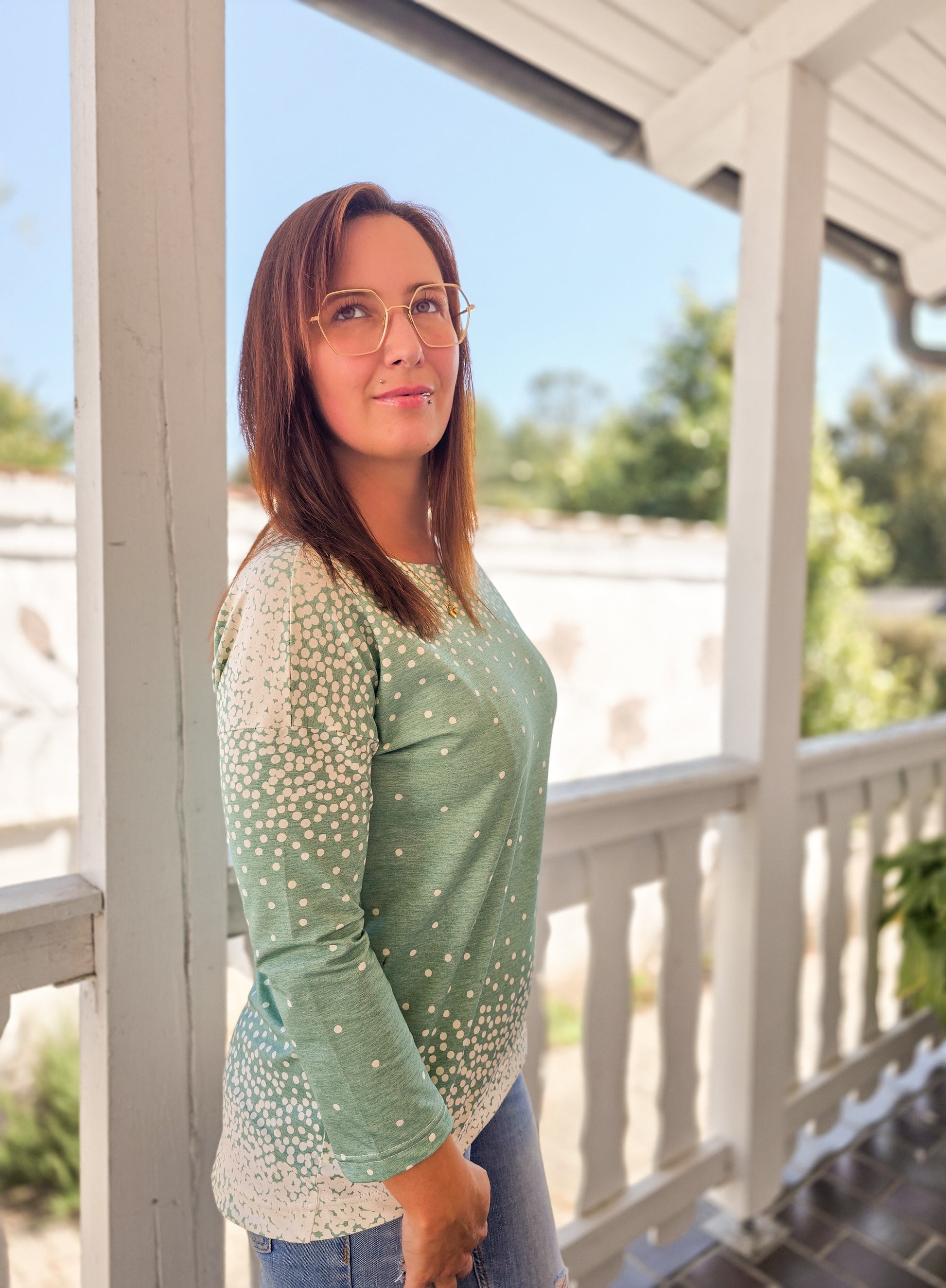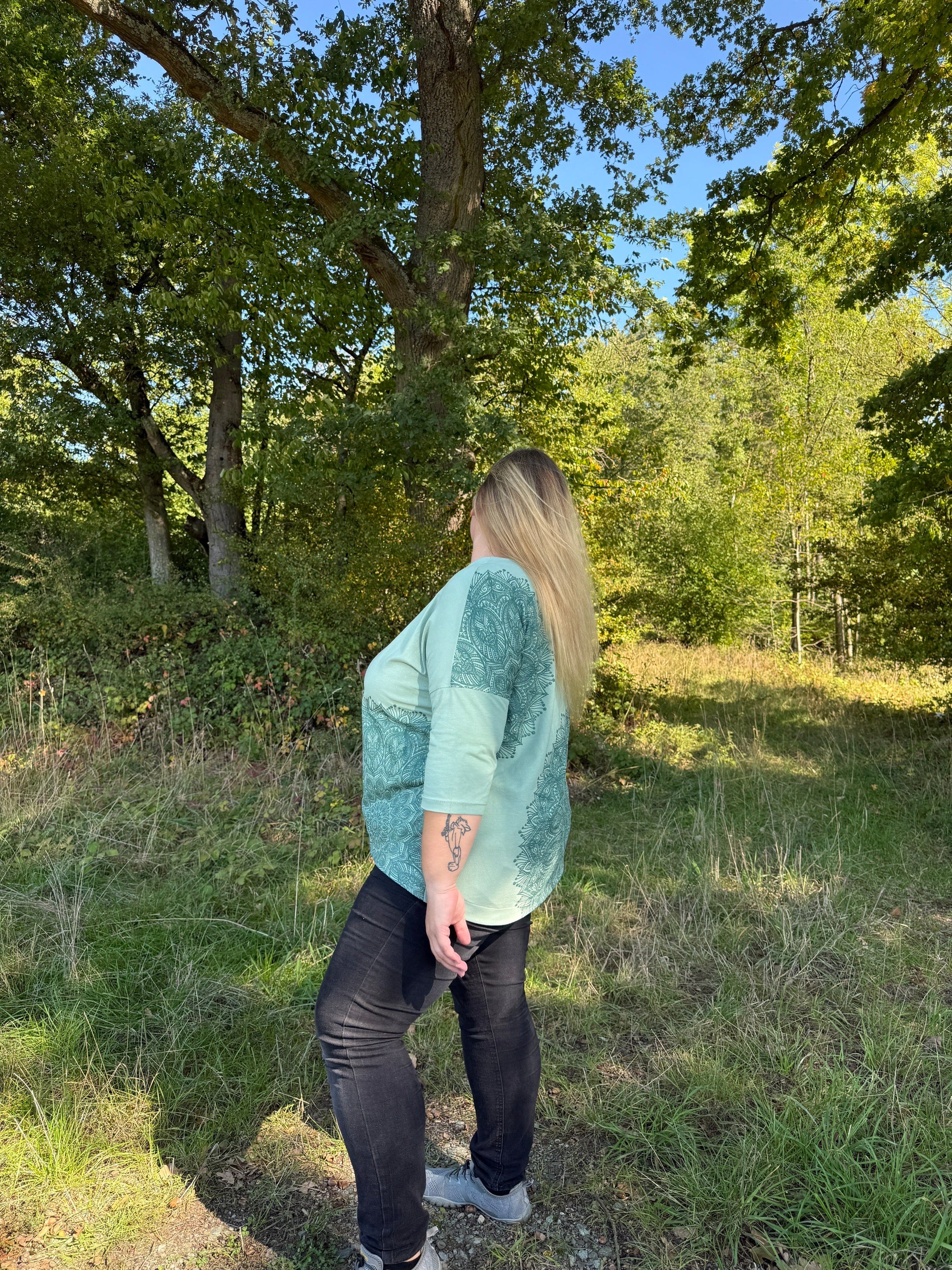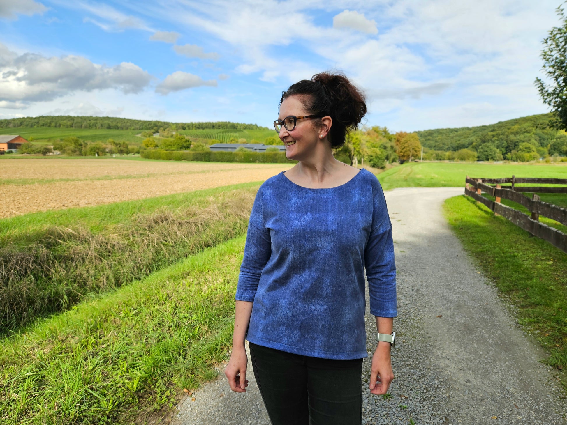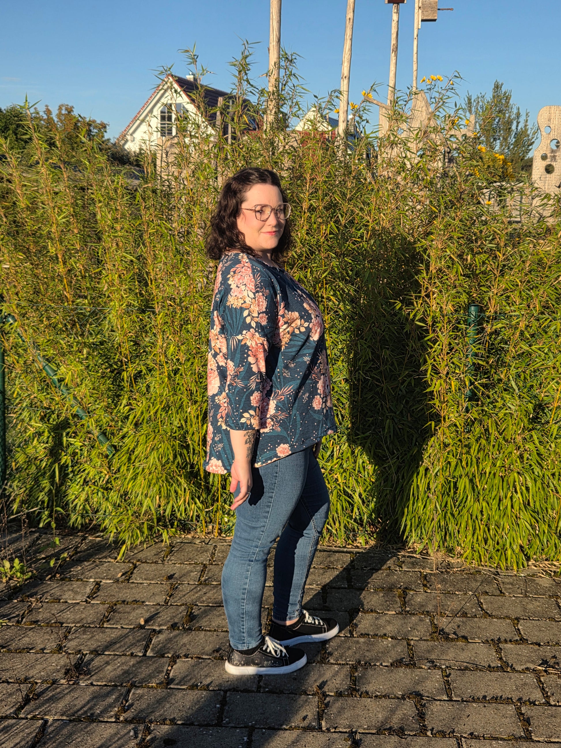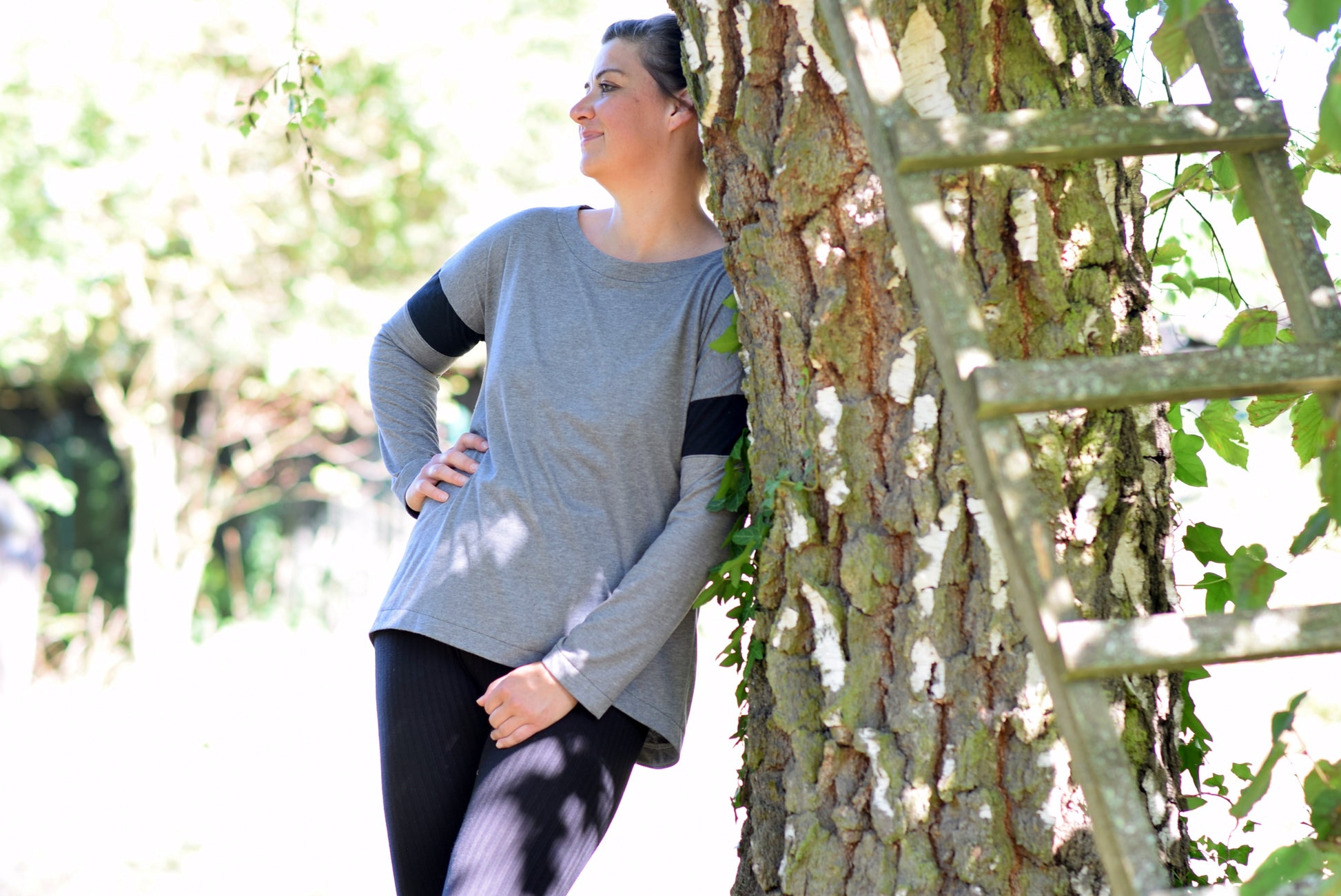 Lättja ist ein Basicshirt mit leichter oversized Passform, überschrittenen Schultern und einem VoKuHiLa-Saum. Der Ausschnitt ist etwas weiter, was dem dem Shirt einen lässigen Look verleiht. Lättja kann wahlweise mit 3/4- oder langen Ärmeln genäht werden.