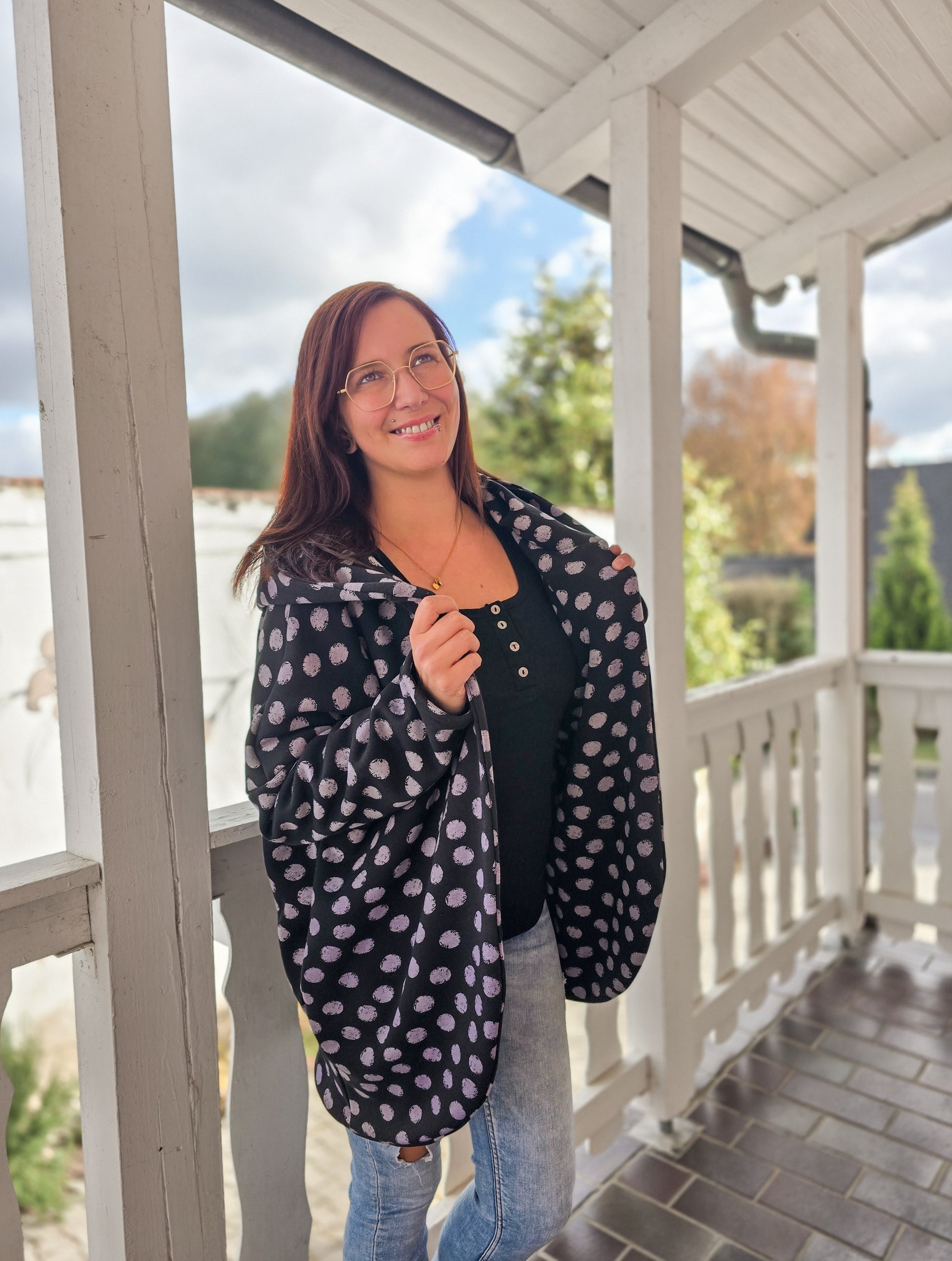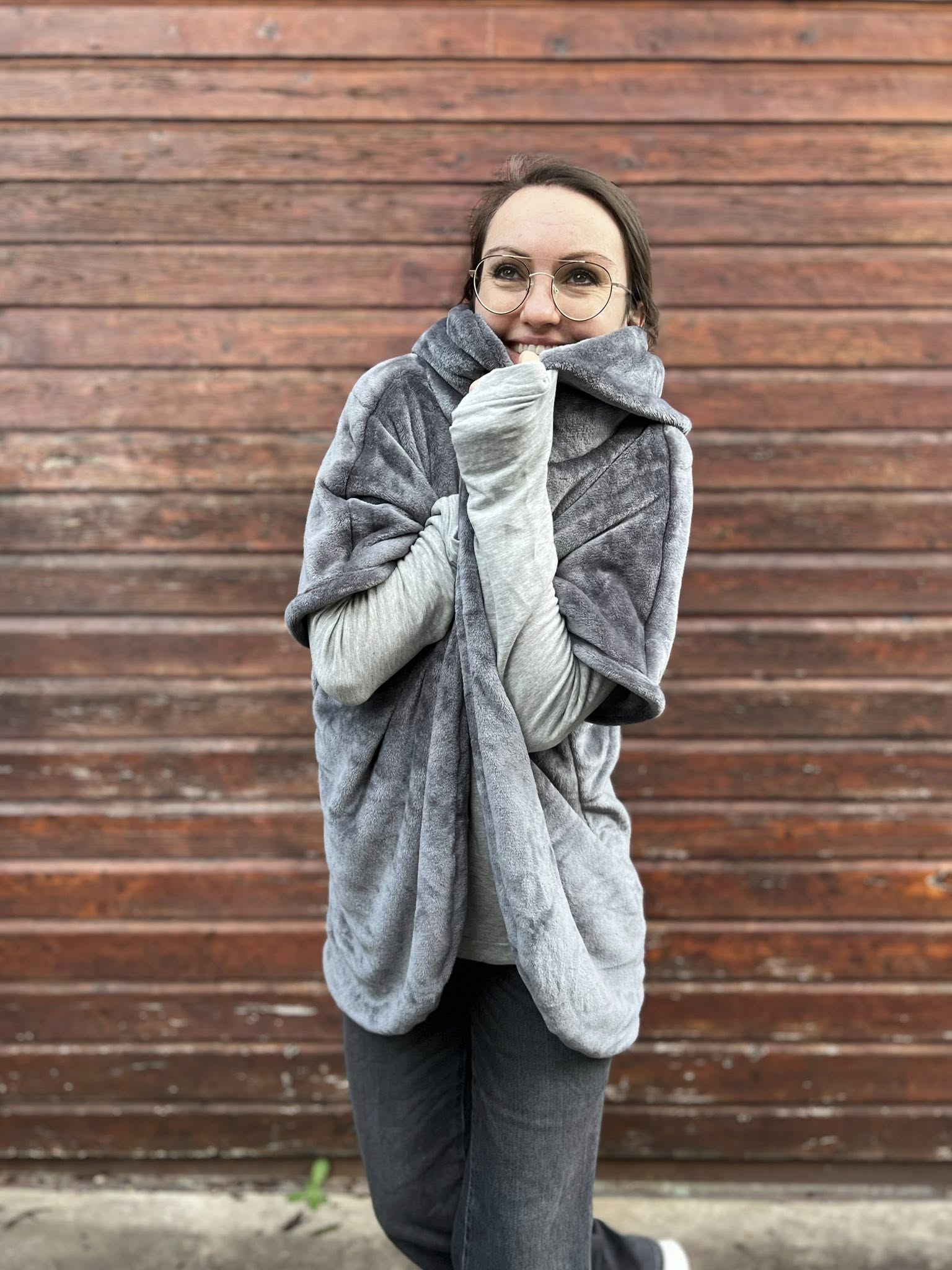 Tulpan kann wahlweise mit Ärmeln oder ohne genäht werden. Die Variante ohne Ärmel wird liebevoll „Kuscheldecke to go“ genannt. Denn genauso wie eine Kuscheldecke umhüllt auch Tulpan dich - egal ob auf der Couch, bei der Arbeit oder unterwegs!
